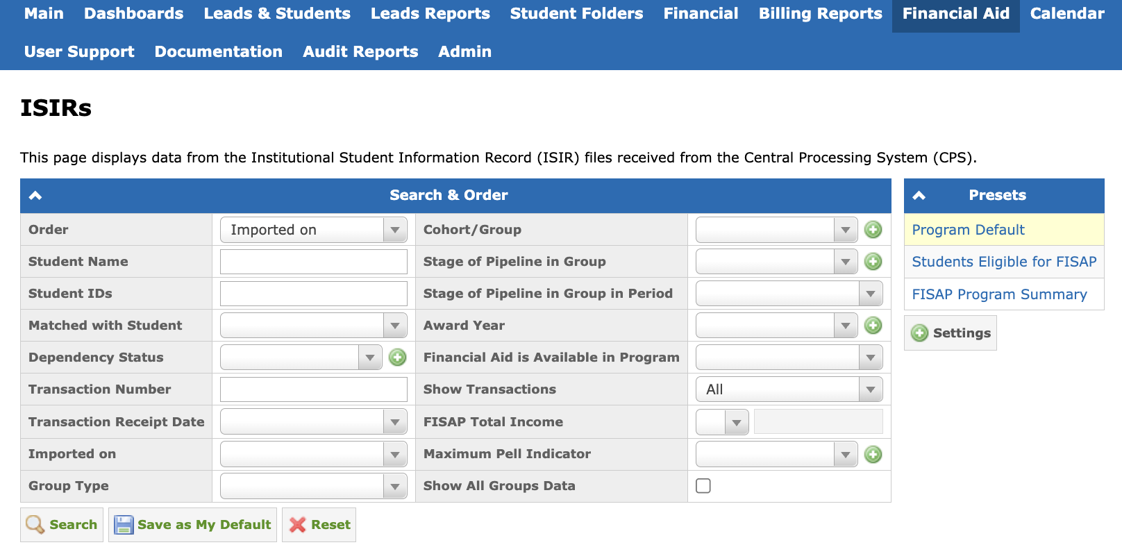 If the ISIRs are matched to the students, those records are distributed among campuses and programs. If not, the records are sent to all users.