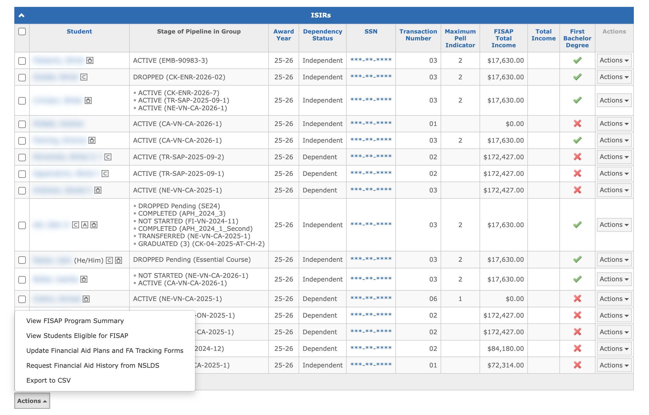 4. The ISIRs page allows updating the data for multiple students at once.