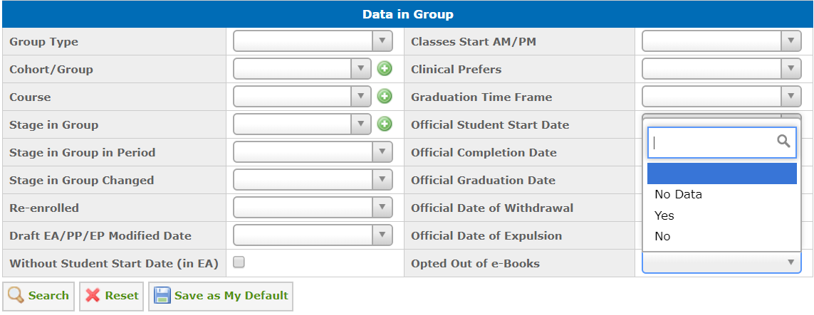 The Leads & Students page now allows searching by the Opted Out of e-Books field: