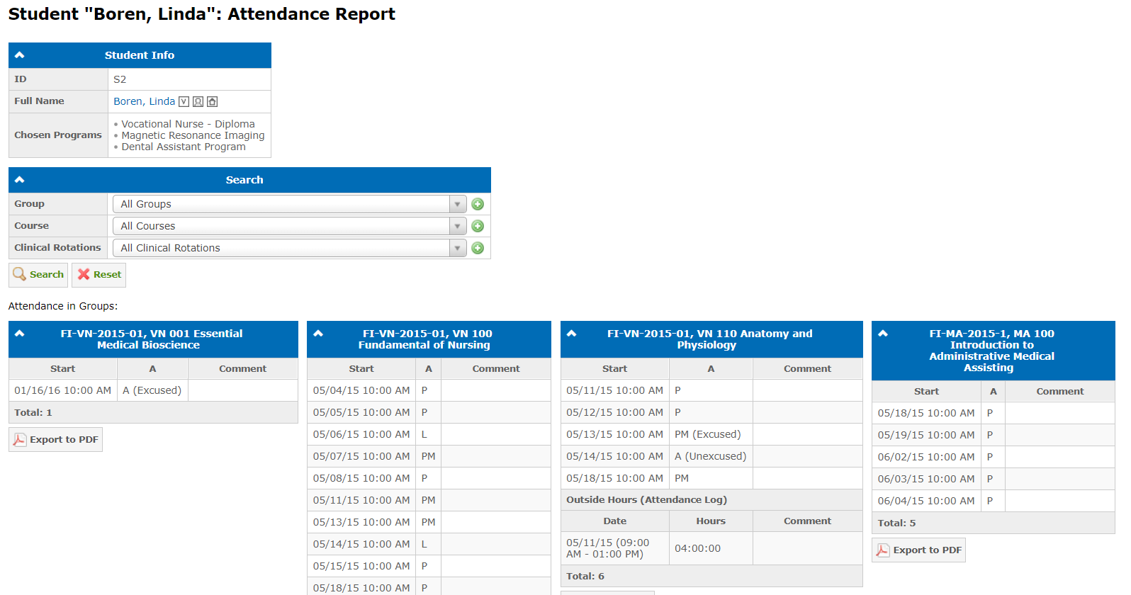 - Education → Clinical Attendance → View Students Clinical Attendance