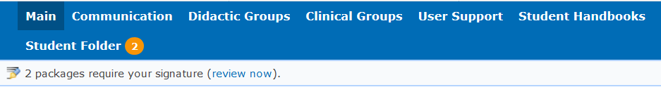 A notification about required signatures will be displayed near the Student Folder menu item and in the information message under the main menu.