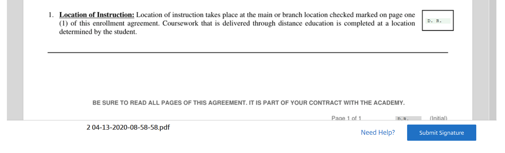 When all the required fields are filled click the Submit Signature button at the bottom of the page: