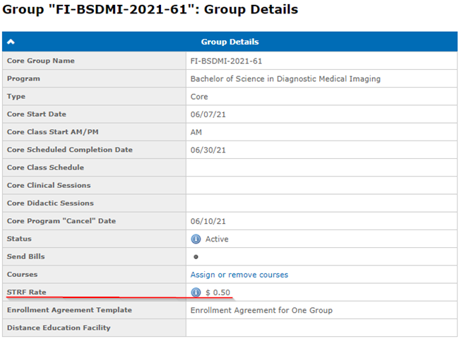 The STRF charges are calculated automatically during the Enrollment Agreement preparation.