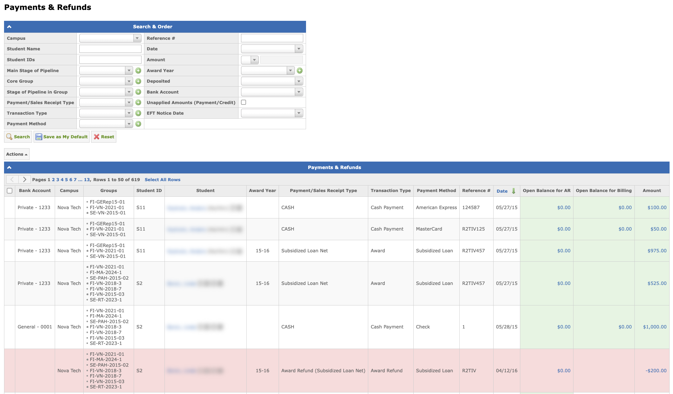 The Payments & Refunds report — is a report containing all student’s payments and refunds:
