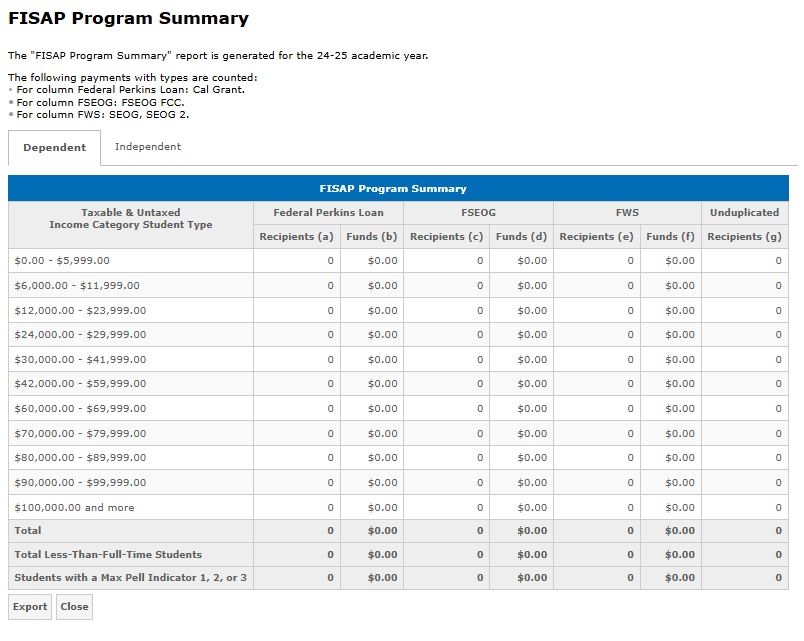 - FISAP Program Summary Report