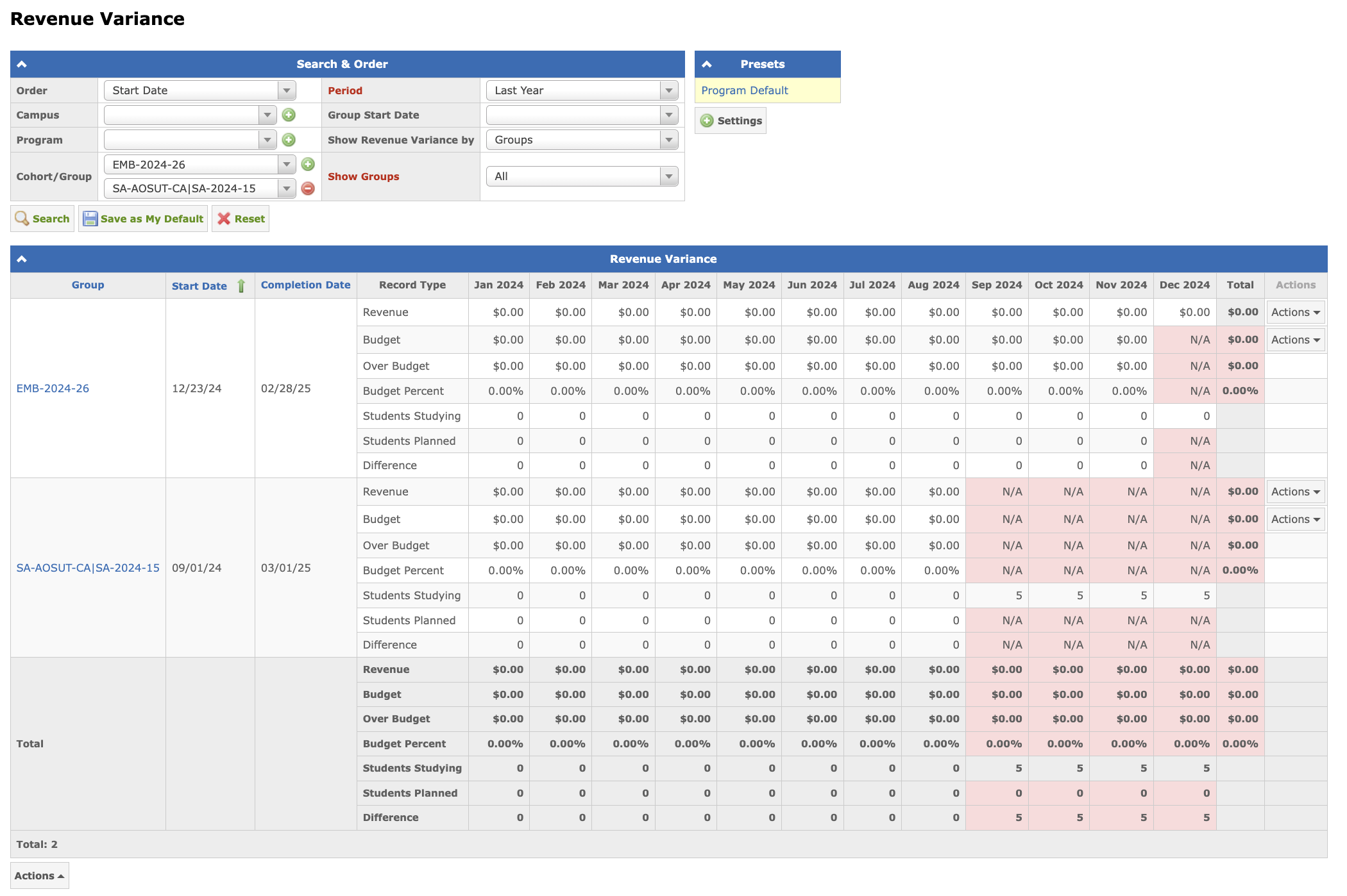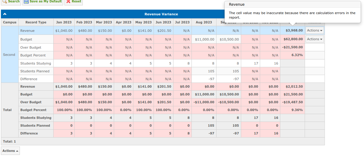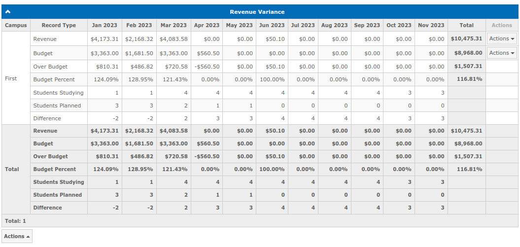 Revenue Variance — is a report where you can see the difference between the school revenue and the budget revenue.