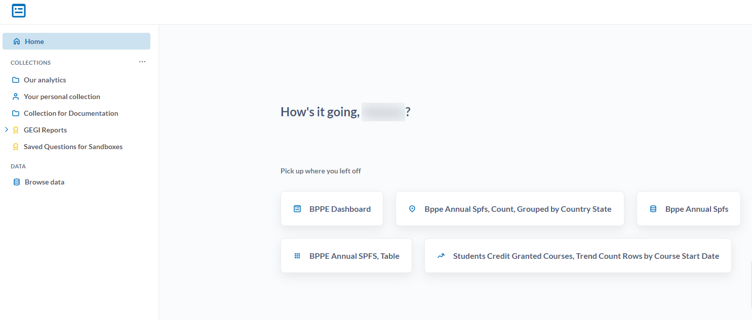 Recently visited reports will be shown as tiles on the main page of the Reporting System.