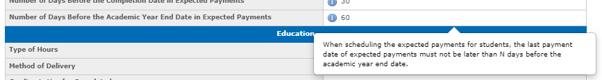 You can set the deadline offset in the Number of Days Before the Academic Year End Date in Expected Payments field in program settings: