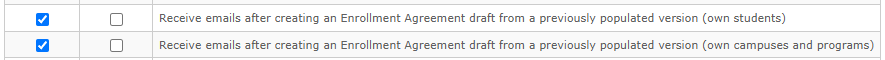 - Receive emails after creating an Enrollment Agreement draft from a previously populated version (own campuses and programs)