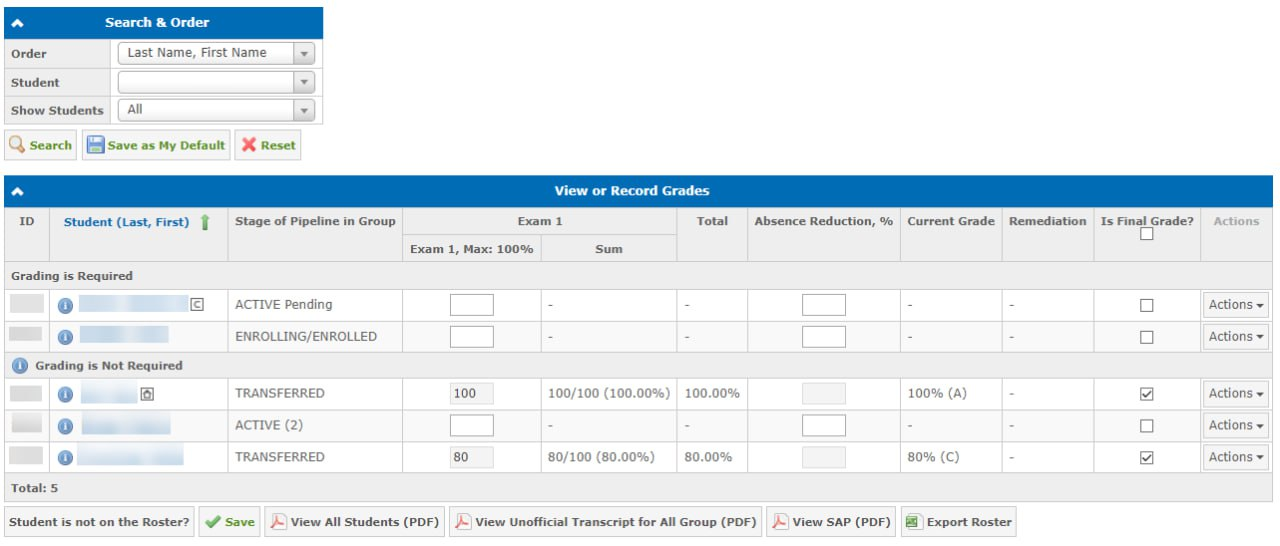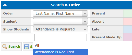 When Attendance/Grading is Required is selected, only the students who require grades and attendance are displayed: