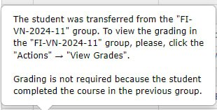 Students from the Attendance/Grading is Not Required section will have a tooltip explanation of why grading and attendance are not required for them: