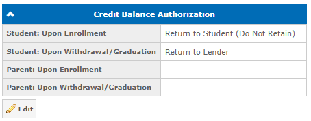 The Credit Balance Authorization panel in the FA Tracking Form allows tracking Title IV authorization choices without manual documents review: