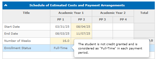 For students without credit-granted courses, enrollment status is Full-Time in each payment period.