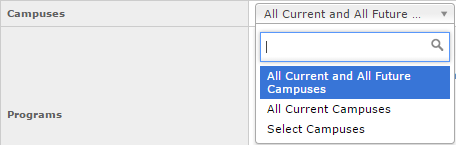 - All Current and All Future Campuses - a user has access to all existing campuses and all new campuses that will be created in future. This is useful for system administrators.