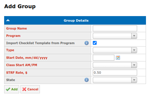 Also, we recommend implementing your own naming rule for your groups and following this rule when working in GEGI. For example, a group name may contain an abbreviation for a campus, a program, and a start date: CA-PR-01/01/2015; or a year and a group number: CA-PR-2015-01. This may help you easily find groups on the Cohorts & Groups page.