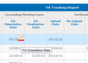 Note: Only fields which are entered in the FA tracking form manually can be edited, but not those which were taken from the payment plan automatically (Cleared, Comment Codes, Stafford Loans, PLUS Loan, Disbursements Status).