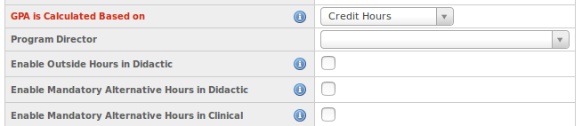 Added the ability to choose either Clock/Contact Hours or Credit Hours for GPA calculations.Select the hours type for GPA calculation in the GPA is Calculated Based on drop-down list at the Program “Name” page: